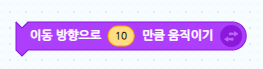 - 위 블록코딩은 미리 정해진 방향으로 10만큼 움직이라는 뜻입니다.