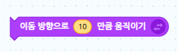 - 위 블록코딩은 미리 정해진 방향으로 10만큼 움직이라는 뜻입니다.