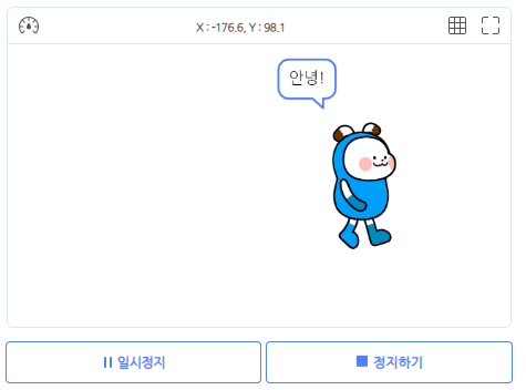 - 마지막은 오브젝트(엔트리봇)을 클릭을 해제 했을때 [안녕!]이라고 말합니다.