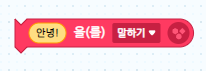 - 위 블록은 안녕! 이라고 말하기는 블록코딩입니다.