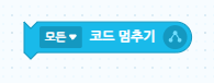 위 <모든> 코드 멈추기 블록은 <모든> 이라는 옵션에 선택된 부분의 코드를 멈추는 블록코딩입니다.