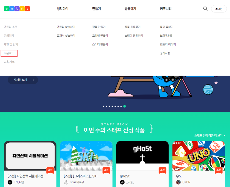 두번째 방법은 엔트리 홈페이지에서 클라이언트 설치 프로그램을