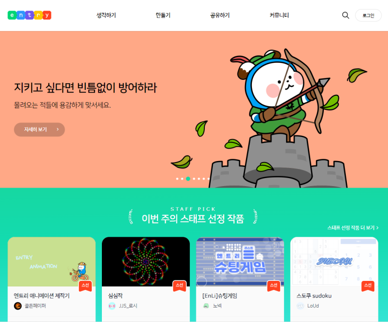 엔트리 시작화면입니다.